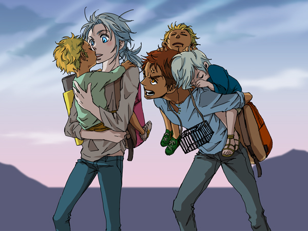 チビは体力配分考えていないから、帰り道は皆撃沈必須でロスとサガは三人をどうにか抱えて聖域に帰る。自分らも充分に『子供』と呼ばれる年齢なんだけどもうね、すっかりお父さんお母さんなの。
