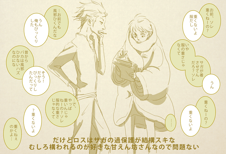 勝手なイメージでサガは体温低そうって思ってます。かたやロスは体温高そう。なので天然湯たんぽ&暖房器具扱いを受けていればいいです。或いは自ら志願してサガ専用カイロ。