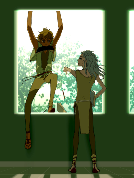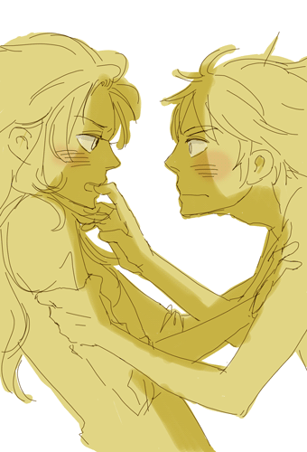 まだね、恋心とか淡~い二人なんでスキンシップに恥ずかしさが無くって、でも潜在意識的には恋路を歩んでいるので一緒にいたがる。ロスはなんかサガにひっついてると物凄くしっくりする…というか癒されるっていうか満たされるので、読書するサガに「温めといてやろう」とか言って大概イラストみたいなポジションを取るといい。そして癒されすぎてうたた寝。